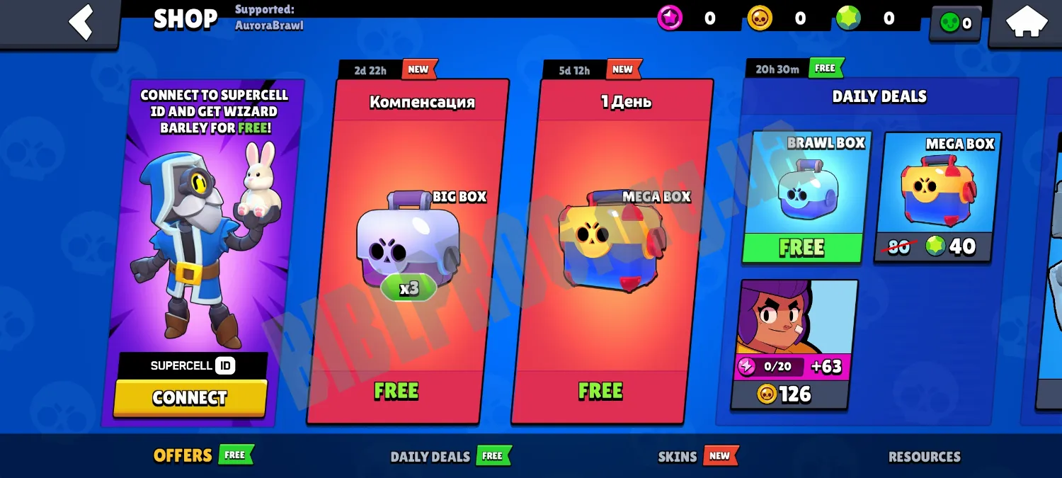 Aurora Brawl — возможность разнообразить игровой процесс Бравл Старс без финансовых вложений. Это бесплатный фанатский проект на основе 32-й версии, который предоставляет немало преимуществ для оптимизации игрового процесса. Игра имеет компактный размер и не содержит рекламы, устанавливать можно параллельно с оригинальным клиентом.