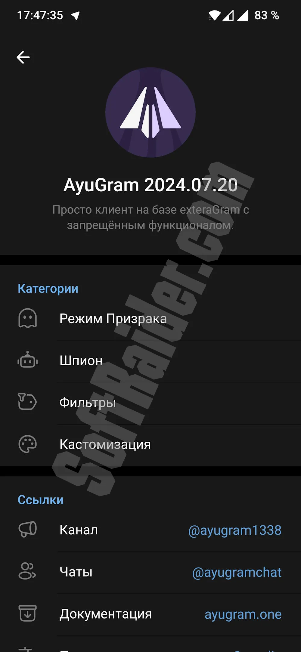AyuGram — это модифицированный клиент Telegram для Android, созданный для пользователей, которым нужны дополнительные функции и гибкая настройка интерфейса. Приложение сохраняет полностью оригинальный движок Telegram и совместимость с его серверами. Это обеспечивает высокую скорость работы и стабильность при передаче сообщений, файлов и медиа.