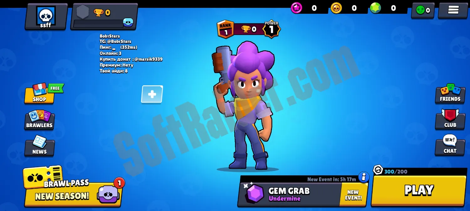 Главной особенностью сервера является наличие большого количества интересных ивентов и подарков от авторов проекта. На сервере есть рабочий магазин, Бравл Пасс, топы, клубы и многое другое. Все это гарантирует максимально насыщенный геймплей, без каких-либо финансовых вложений.