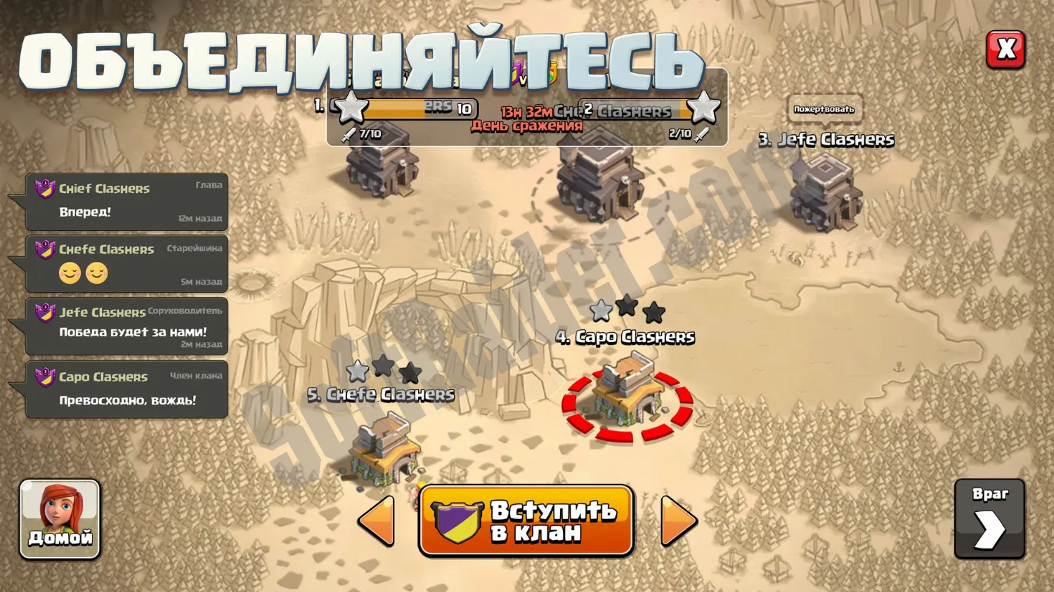 Отдельную роль играют кланы. Объединяясь с другими игроками, можно участвовать в клановых войнах, совместных событиях и обмениваться войсками. Клановая составляющая добавляет соревновательный элемент и делает игру более живой, особенно на средних и высоких уровнях развития.