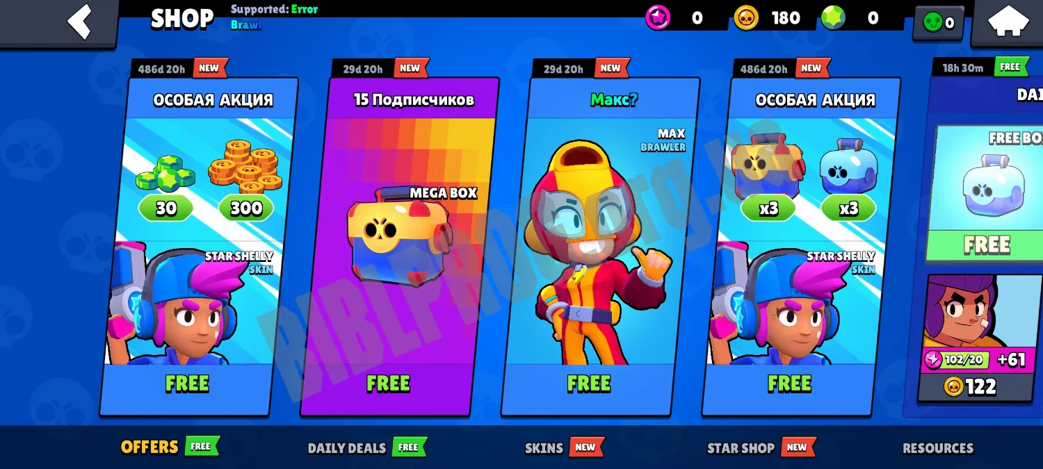 Если вы в поиске рабочего сервера Бравл Старс, тогда Error Brawl — классный бесплатный вариант. Рабочий Бравл Пасс, магазин, регулярные акции и подарки, а также стабильный игровой процесс делают его отличным вариантом для всех любителей динамичного геймплея. Обязательно пробуйте, точно не пожалеете!