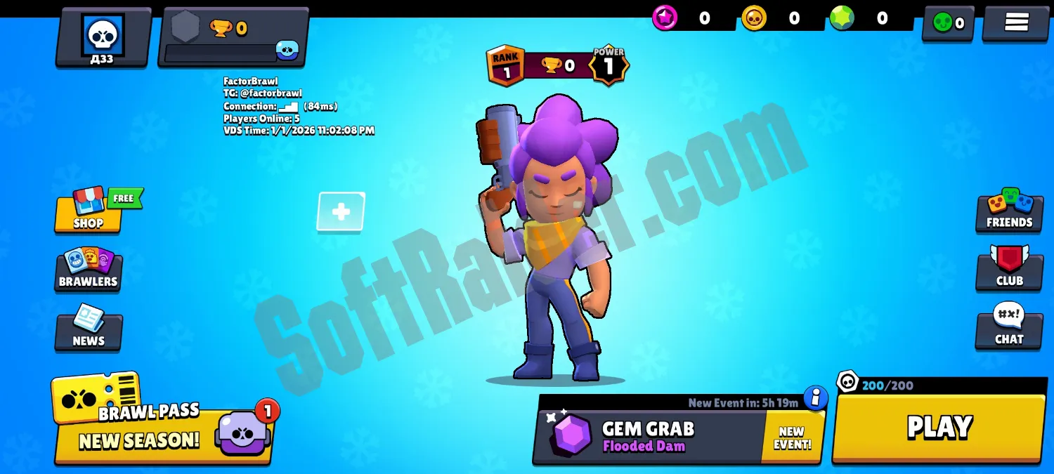 Factor Brawl — частный сервер МОВА Brawl Stars, который предназначен для оптимизации игрового процесса. Проект основан на 32-й версии оригинального клиента и предоставляет игроку дополнительные возможности и преимущества для максимально динамичной игры. Сервер распространяется бесплатно, имеет компактный размер и не содержит рекламы.
