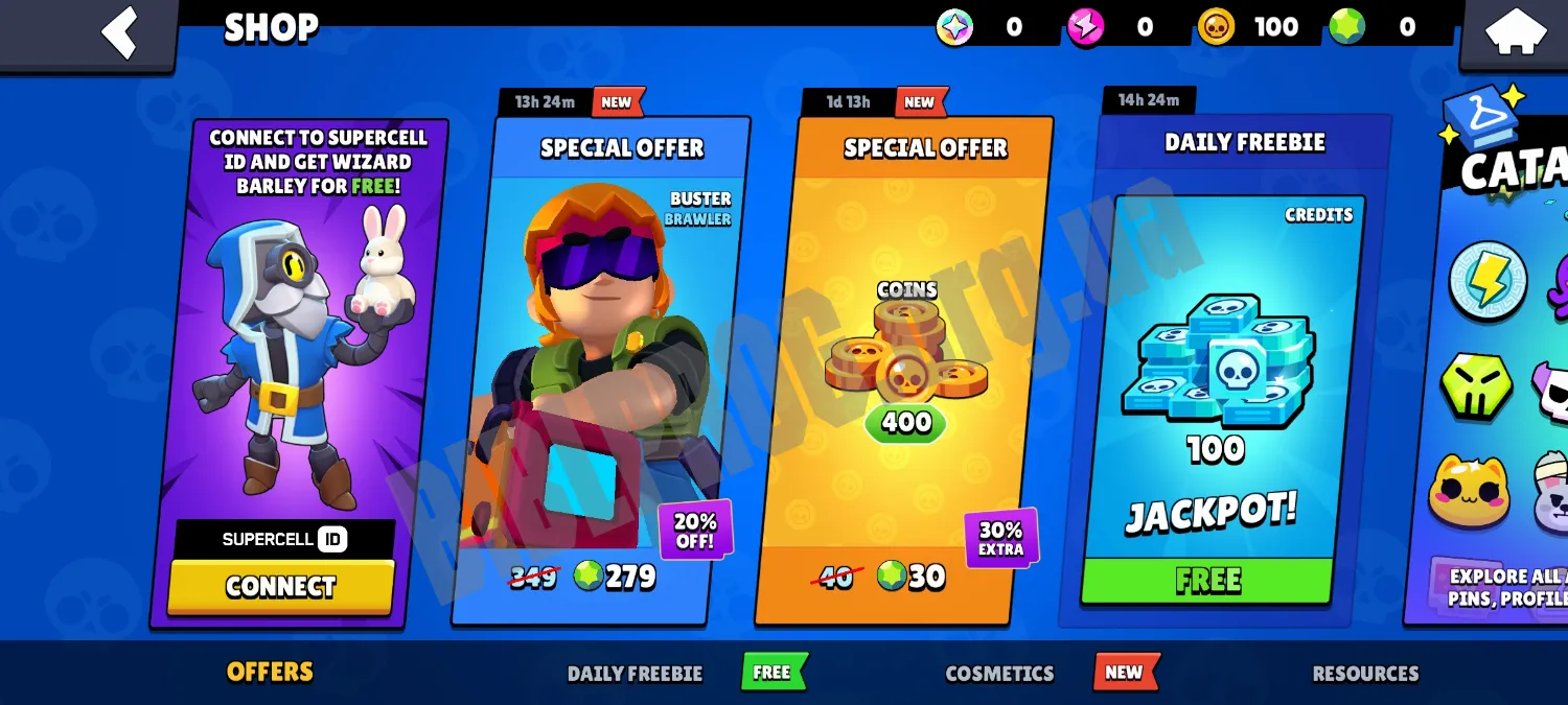 Сервер добавляет множество новых функций и улучшений. Здесь вам уже на старте игры будут доступны игровые ресурсы, которые вы можете потратить на разблокировку бравлеров и скинов. Изначально бойцы не разблокированы, но благодаря регулярным акциям и подаркам, вы сможете максимально быстро открыть новых героев.
