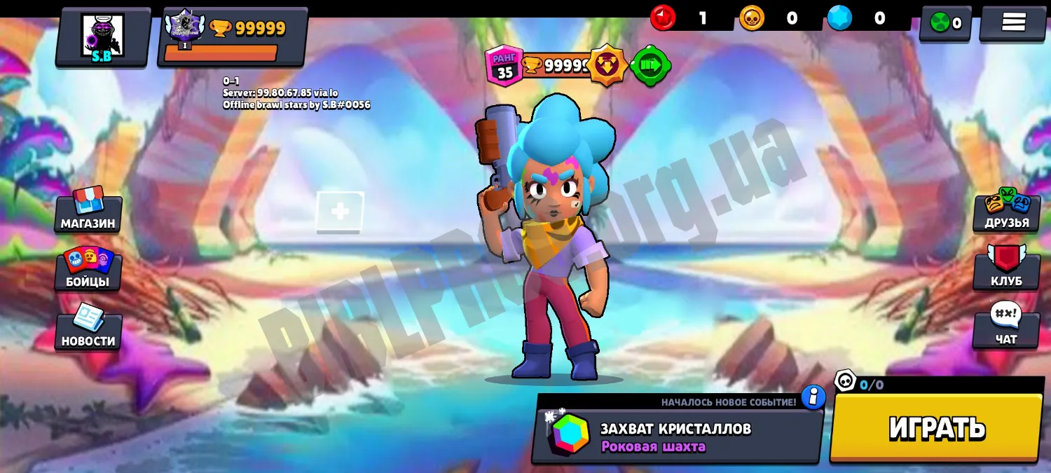 Ключевая особенность сервера — разблокированные бравлеры уже на старте игры. Вы просто выбираете бойца и отправляетесь на арену, без траты времени на прокачку. Также добавлено немало уникальных скинов, которые доступны совершенно бесплатно. Еще одним плюсом является наличие разнообразных игровых режимов. Среди других достоинств сервера стоит отметить ряд визуальных изменений. В игре новая иконка, стильный загрузочный экран, а также фон в лобби. Звуковое оформление полностью обновлено.