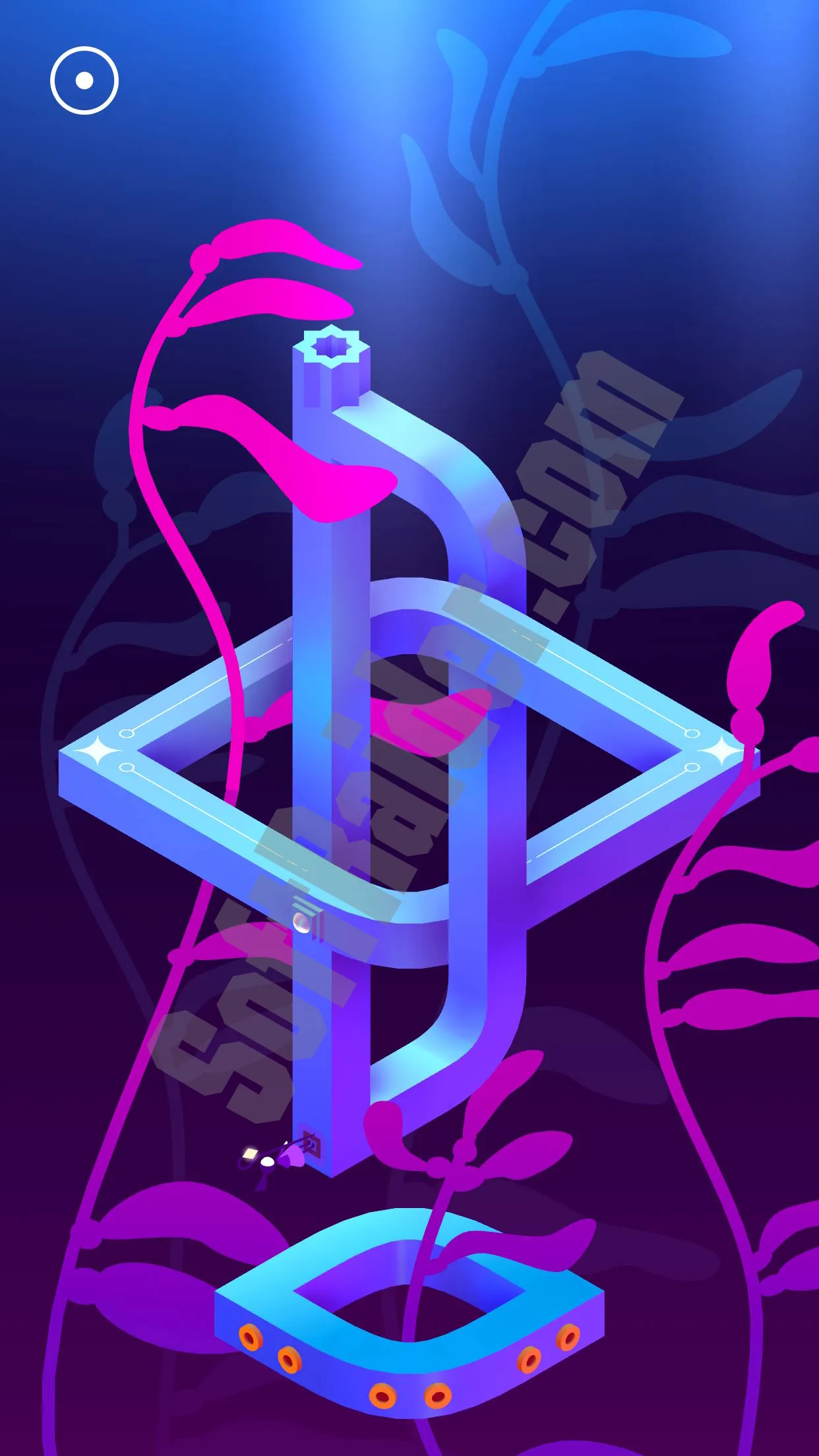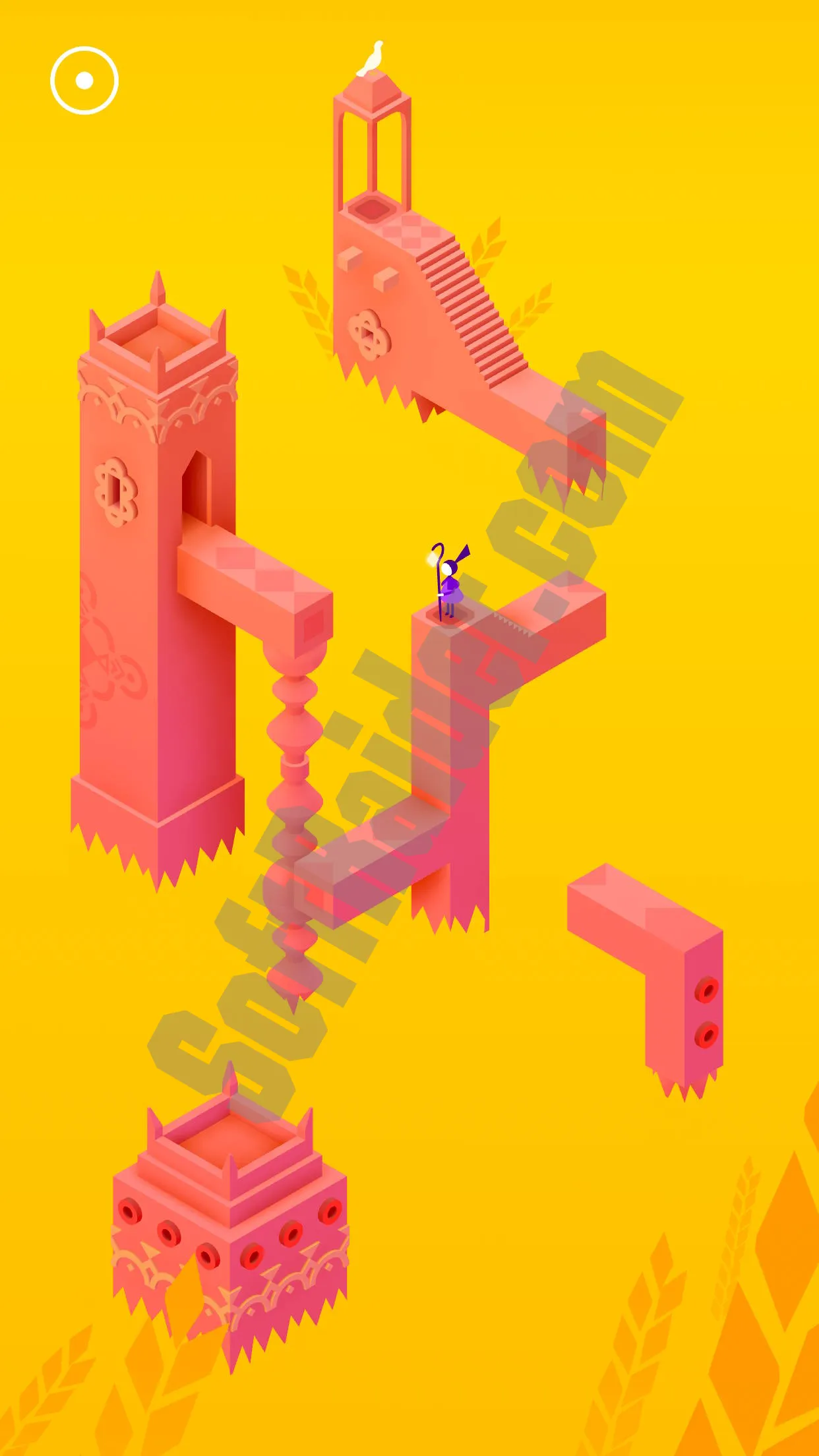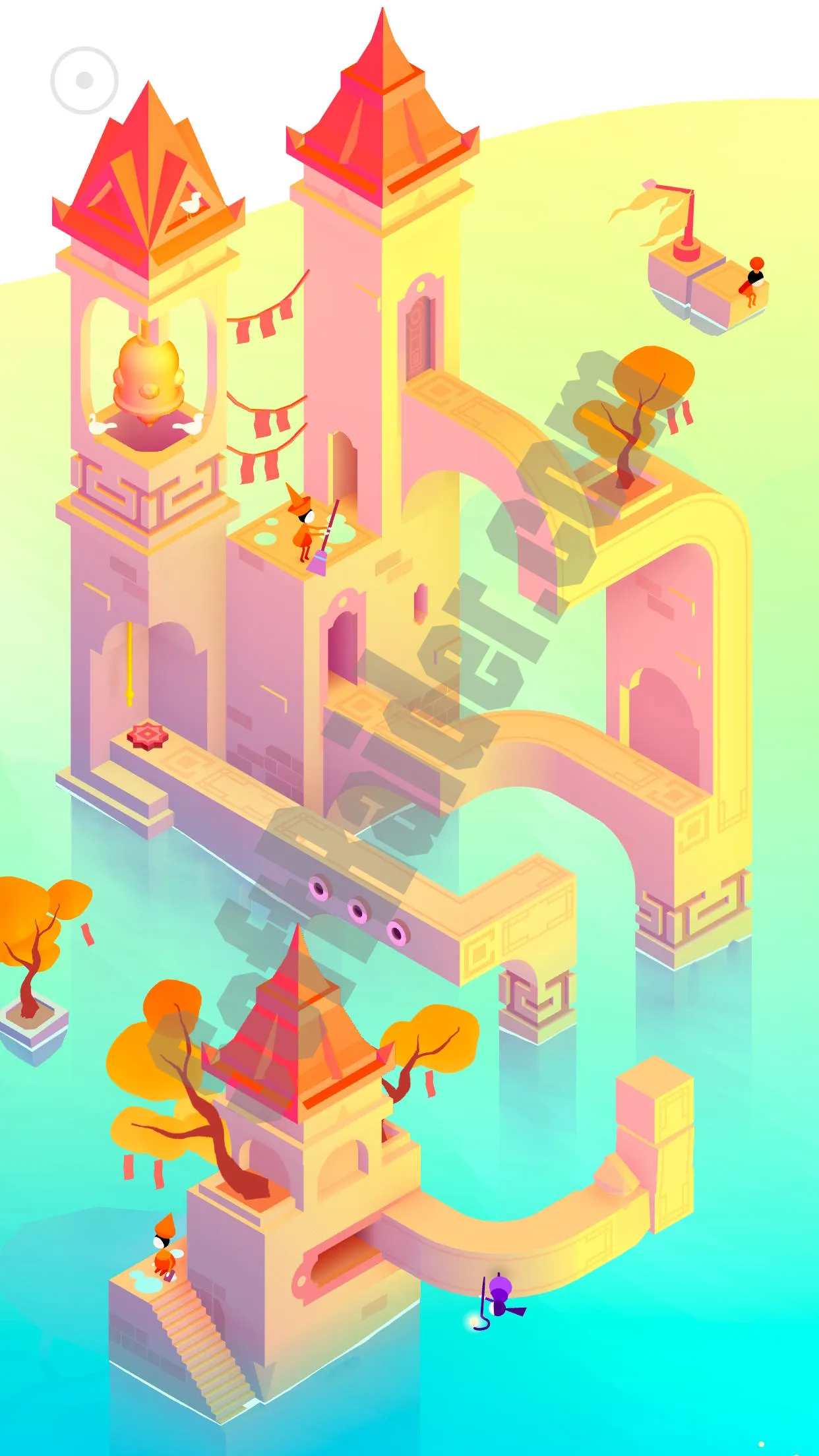 Мир Monument Valley 3 состоит из ярких, насыщенных локаций — от тихих храмов до величественных руин, оживающих при взаимодействии. Вы управляете приливами, открываете новые маршруты и путешествуете вместе с Нур на маленькой лодке. Каждая сцена оформлена как художественная композиция, в которой сочетаются цвет, символика и геометрия.