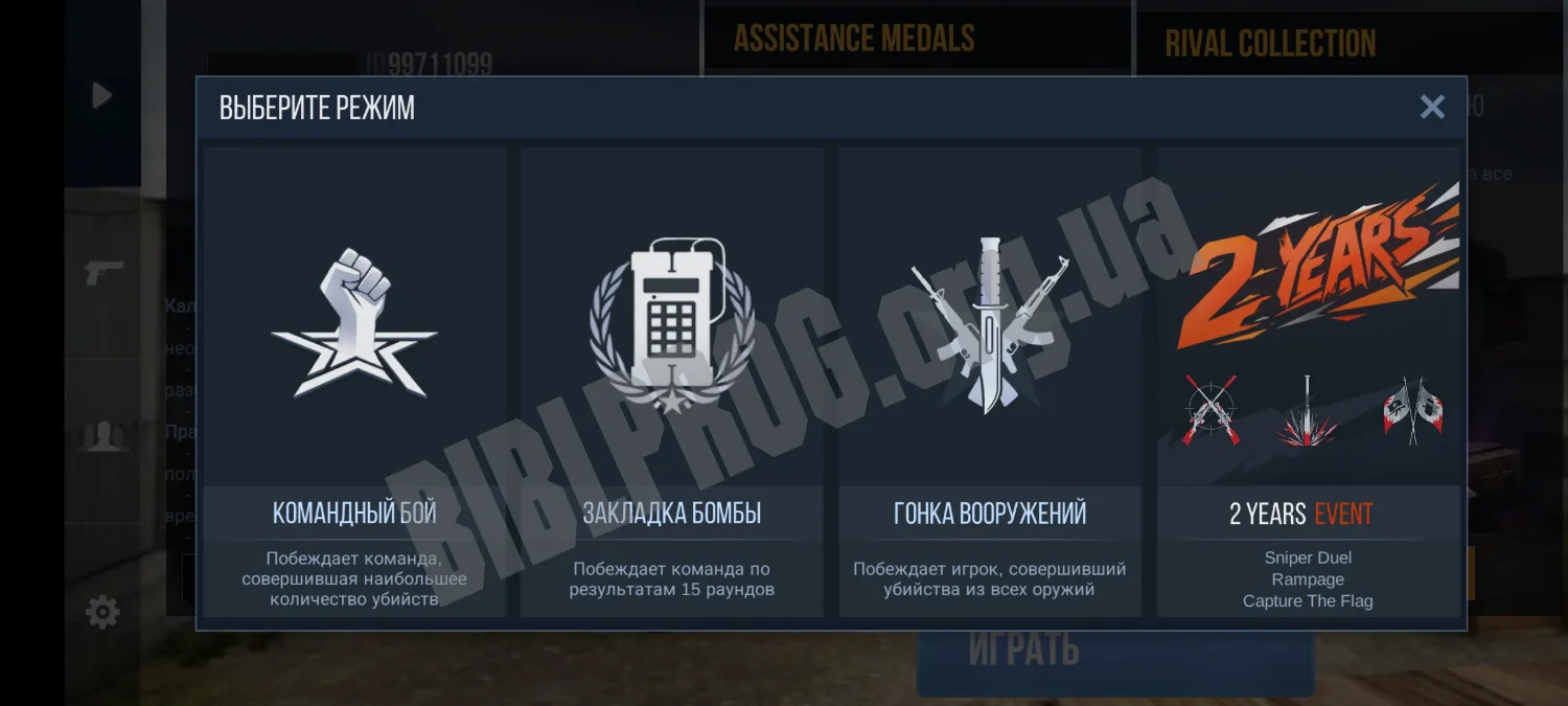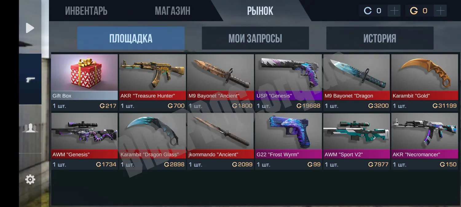Сервер включает в себя все базовые игровые режимы, доступные в оригинальном Standoff 2: «Командный бой», «Закладка бомбы», «Гонка вооружений». Работает внутриигровой магазин и рынок. Инвентарь по умолчанию пустой, что обеспечивает равные стартовые условия для всех игроков.