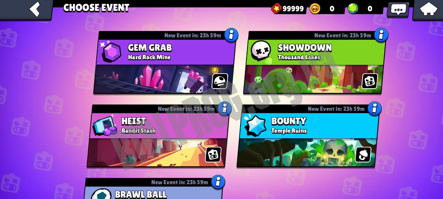 Ключевое преимущество данного проекта — разблокированные бравлеры уже на страте игры. Всего доступно 27 бойцов. Вы можете выбрать любого из них и отправиться на арену. Также важно отметить широкий выбор игровых режимов. Благодаря этим ключевым моментам игра на сервере будет максимально насыщенной.