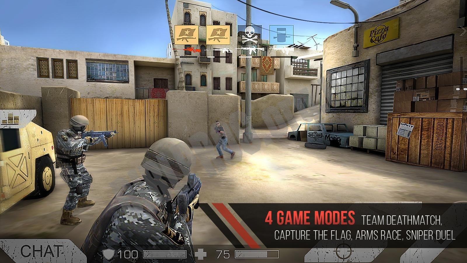 Приложение Standoff Multiplayer подарит вам такую возможность. Для прохождения необходимо стабильное подключение к сети интернет. Суть игры стандартна: вы делитесь на две команды, и сражаетесь друг против друга. Во время передвижения по локациям, здесь необходимо внимательно смотреть куда целитесь. Иногда, бойцы достаточно резко выпрыгивают из-за угла, но не все они являются врагами. Чтобы было немного проще отличать своих воинов от противника, наблюдайте, какой флаг находится над самим игроком.