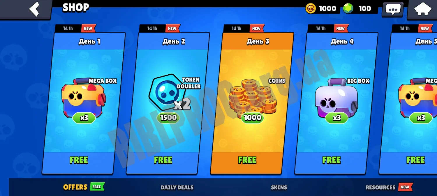 Главным преимуществом данного сервера является то, что уже на старте игры вам выдаются ресурсы. Тысяча монет и 100 гемов совершенно бесплатно! Вы можете использовать эти ресурсы на покупку бравлеров, скинов и других улучшений. К тому же разработчики продукта регулярно устраивают разнообразные акции и розыгрыши с ценными подарками, поэтому у вас будет возможность получить еще больше плюшек.