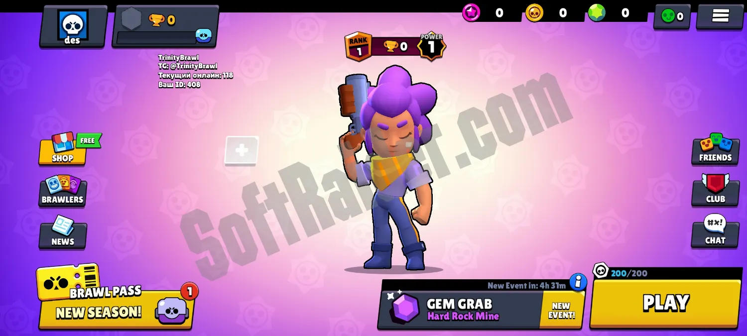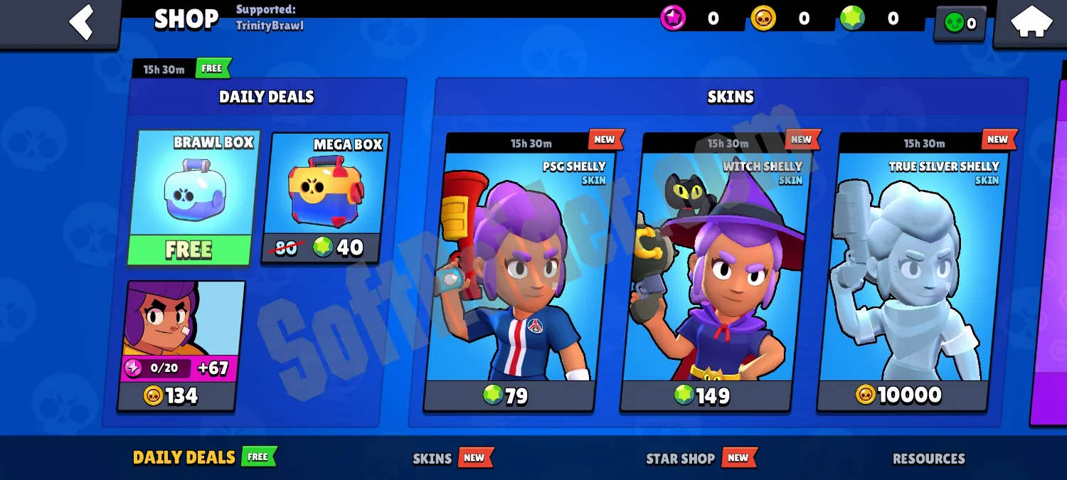 Trinity Brawl — приватный сервер Brawl Stars, предназначенный для Android-устройств и распространяемый на бесплатной основе. Проект ориентирован на пользователей, которые хотят получить модифицированный игровой опыт без ограничений оригинальной версии. Сервер функционирует на базе версии 29-й версии и имеет достаточно регулярные обновления. Монетизация отсутствует, доступ ко всем базовым функциям открыт без обязательных платежей.
