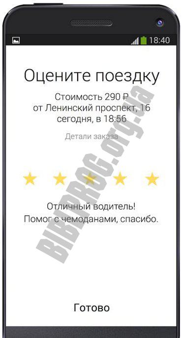 После завершения поездки, пассажир может открыть приложение и поставить оценку водителю. Если оценка составляет три звезды или меньше, предлагается ввести комментарий о том, что именно не устроило в работе такси. Достаточно интересным введением также является отчет о поездке, который присылается на адрес электронной почты. К примеру, если по невнимательности вы забыли в авто личные вещи, то вы всегда сможете отыскать водителя, который вас перевозил.
